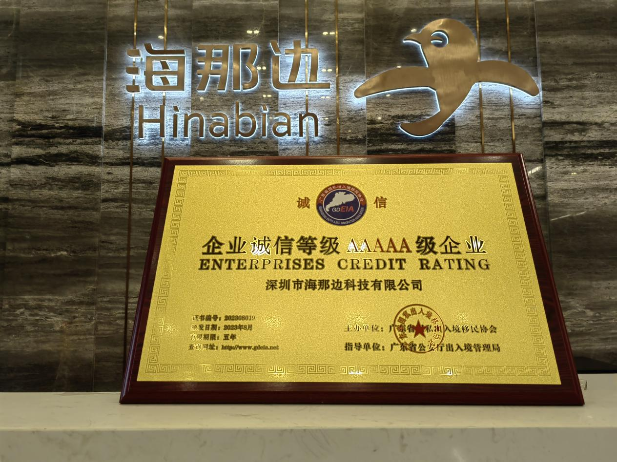 海那边作为移民公司优秀代表受邀参与大会,并在大会上荣获广东省移民协会2022年度优秀会员单位及2021-2022年度企业诚信等级AAAAA级企业。同时获得两项殊荣,体现了海那边在企业经营中的优异成绩以及企业在诚信服务建设中的突出表现,也表明了移民行业权威机构对海那边诚信经营、服务质量的充分肯定。