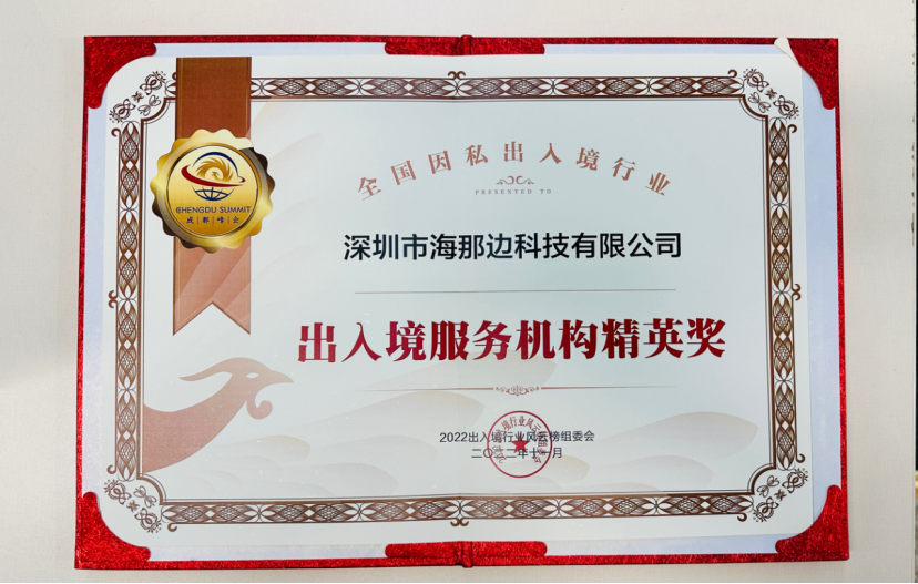 2022年10月31日—2022年11月2日,以“涅槃”为主题的“2022出入境行业全球峰会暨年度表彰盛典”在成都成功举办。海那边作为移民机构优秀代表,荣获全国出入境行业“出入境服务机构精英奖”。