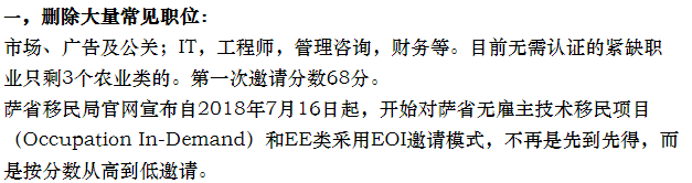 这个类别之前是要求单身50分,已婚59分即可符合要求申请技术移民,每年约5000个左右配额,项目开放邀请后,大家开始抢名额。今年推出了EOI邀请政策,不再是先到先得,而是类似于联邦EE,先申请入池获得分数后,等待邀请,不受配额限制,自2018年8月2日起正式实施。