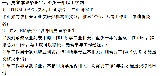 外省毕业生在曼省找到紧缺职业列表的工作,无需和所学专业相关,工作满12个月(不能走首要类,这里我把它放到国际留学生类别了,因为总觉得这个分类不好描述,想重新给它归类:);OR