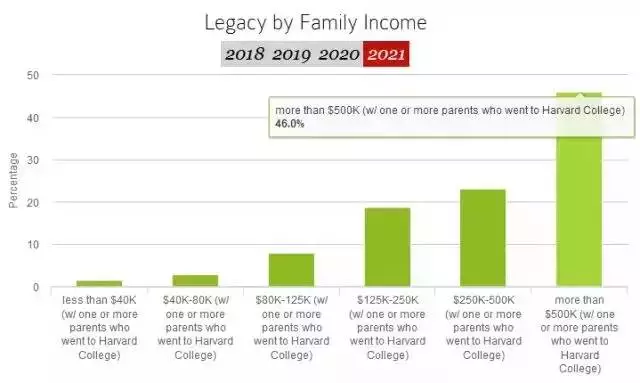 调查显示,2021届来自富裕家庭(家庭收入超过50万美元)或父母至少有一方就读过哈佛大学的新生的比例较前一年大幅上升,占46%,而去年仅为26.6%。