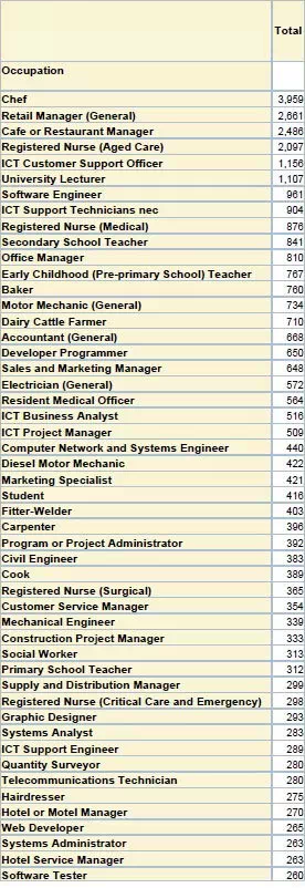 目前,新西兰总共开放672个移民职业,在新西兰就读相关专业,都有机会在毕业后申请技术移民新西兰。每年,新西兰移民局都会该财政年度内的技术人员状况依照申请者所在区域、职业进行统计。